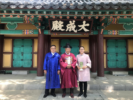 4月30日上午,韩国孔子文化中心韩国孔子学堂会长兼成均馆儒道会总本部副会长朴洪英和韩国孔子文化中心宣传部长兼弘益大学教授全春花等一行来到位于韩国首尔特别市江西区加阳洞的阳川乡校进行访问。阳川乡校典校刘键接待了韩国孔子文化中心一行。