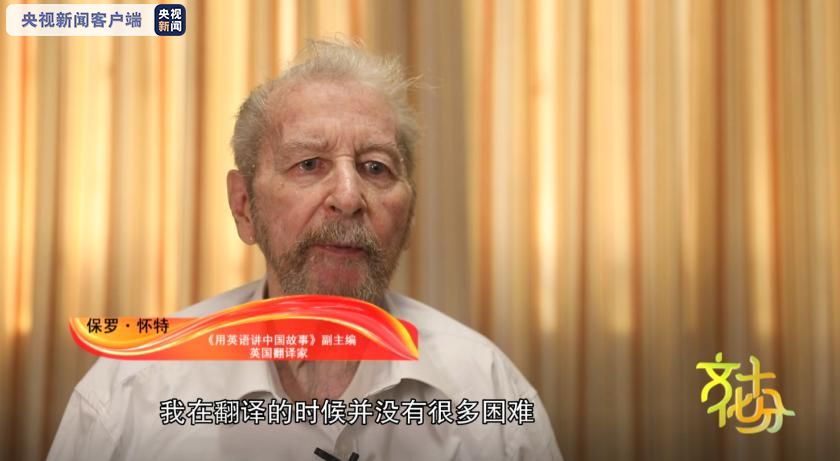 《用英语讲中国故事》副主编、英国翻译家保罗·怀特:这本书脉络很清晰,我在翻译的时候并没有很多的困难,在我创作的过程中,很多工具书帮我更好地理解了中国文化。举一个例子,中国人说的“桃李满天下”,古语中“桃李”指的是这个老师教出了很多的优秀学生,那我在翻译的时候就翻译成了“栋梁之材”。