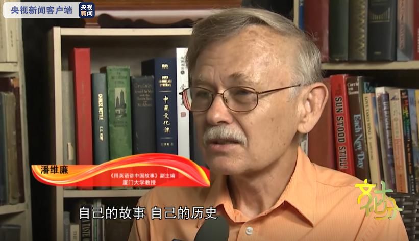 《用英语讲中国故事》副主编、厦门大学教授潘维廉:胡敏看了中国很多孩子出国学英语,他们会学习西方的那些故事历史,但是不知道自己的,所以他觉得他们应该了解,自己的故事、自己的历史,然后到国外也可以好好讲中国的故事。