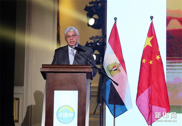 6月15日,埃及高等教育部副部长穆罕默德·艾曼·阿舒尔在“汉语桥”俱乐部开罗站揭牌仪式现场致辞。新华社记者 王东震 摄