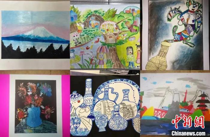 今年8岁的杨烨小朋友的作品《富士长城一起玩》,将中国和日本的标志性景点长城和富士山画在了一起,画面里中日小朋友们手牵手共同玩耍;今年7岁的黄梓曦《青花瓷》作品则描绘出中国古代瓷器的精美图案,展现了中国传统文化的魅力。