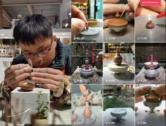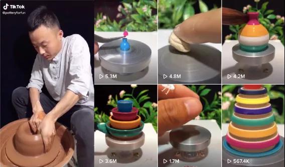 王文化走红之后,一些陶艺师也开始从事微型陶艺。@古镇瓷艺是一位来自中国辽宁省辽阳市的年轻陶艺师,他的作品也传到海外,视频在TikTok播放量总计超过2000万。