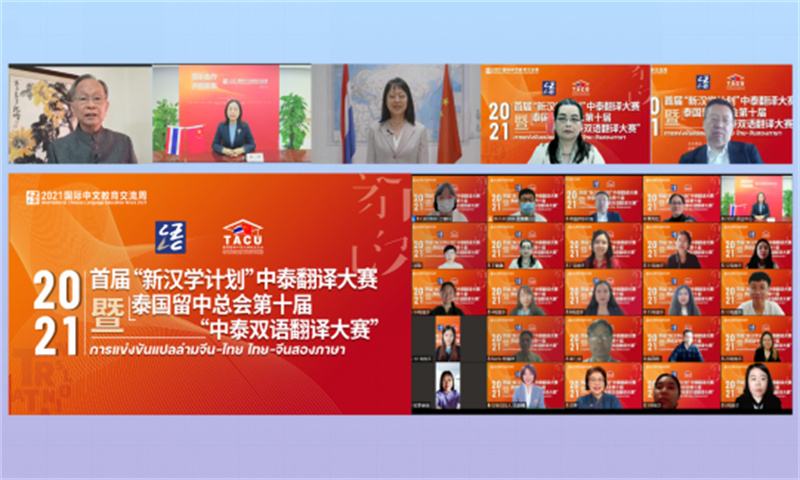 2021年首届“新汉学计划”中泰翻译大赛暨泰国留中总会第十届“中泰双语翻译大赛”决赛于14日成功举办,该活动是2021年国际中文教育交流周系列活动之一。前中国驻泰国大使张九桓、中外语言交流合作中心副主任静炜、中国驻泰国大使馆教育参赞冯俊英、泰国留学中国大学校友总会主席丁佩佩、中国翻译协会秘书处处长刘强出席决赛开幕式。