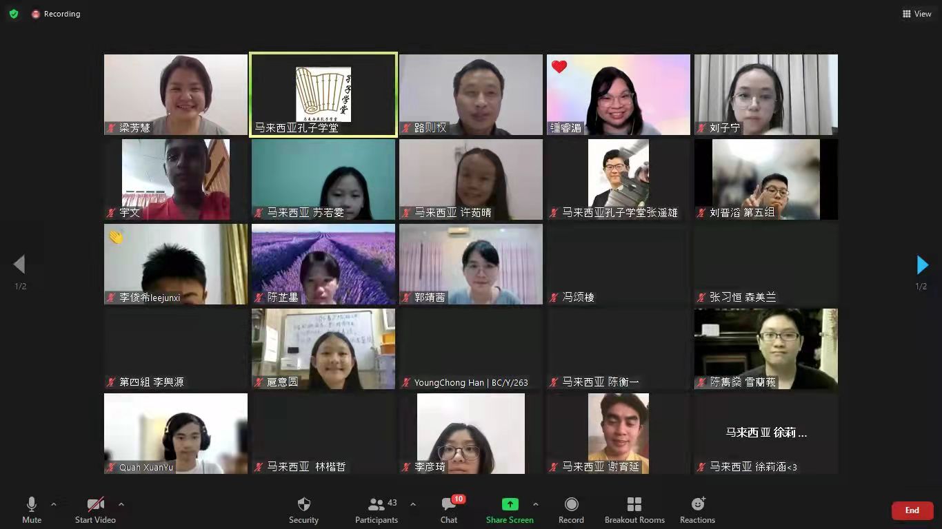 12月16日,尼山讲坛(海外系列)通过线上方式举行,尼山世界儒学中心路则权副研究员主讲《我们距孔子有多远》。马来西亚中国文化及商业合作促进会孔子学堂主席梁芳慧主持讲座。马来西亚通讯及多媒体部霹雳州特别事务官员、孔子学堂署理主席张遥雄,天籁才艺学堂董事、孔子学堂副主席谢育延,双威集团五金分部高级主管、孔子学堂秘书长苏佳晋,国际学校高级主管、孔子学堂稽查李嘉嘒,以及来自马来西亚11个州属暨吉隆坡、雪兰莪、森美兰、马六甲、柔佛、霹雳、槟城、登嘉楼、吉打、砂拉越、沙巴的中学生、家长及老师们共50多人参加了讲座。
