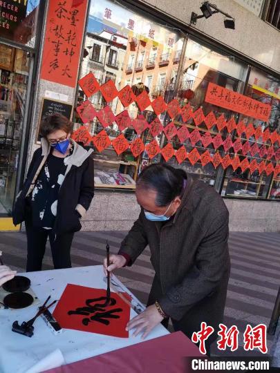 西班牙华夏文化走廊总干事、茶文化协会会长林东在电话中向记者介绍,西班牙华夏文化长廊位于西班牙马德里市中心的月亮广场,客流众多。正月间,西班牙太极精武团队杜京煌、安娜等小朋友表演少林拳,“虎虎生威”;西班牙本土学员SARA和MARIA等上百位中西方汉文化爱好者,陆续到来,写福字、写春联,“体验了中国年,欣赏了福文化”。
