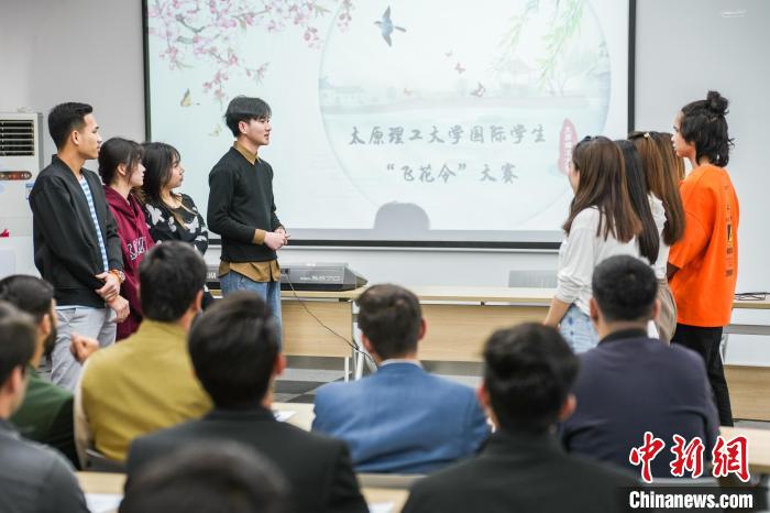4月18日,外国留学生参加山西太原理工大学举办的“飞花令”大赛。 中新社记者 武俊杰 摄