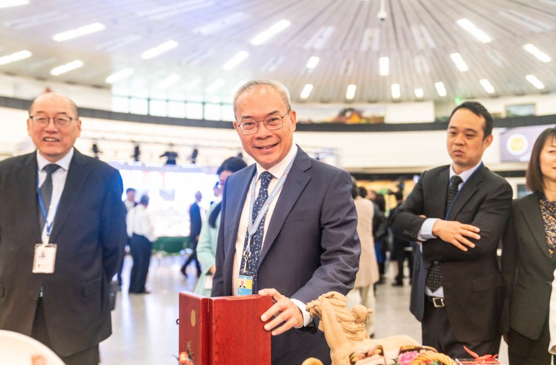 开幕式之前,李松、白玉刚陪同国际组织负责人及其他中外嘉宾参观了以“字、景、史、画”为主题的“中国人中国字”主题展、“文源海岱”文化主题展、“好客山东好品山东”主题展、“翰墨齐鲁”书画展等四大板块综合展览,观赏了山东省16个地市景观图片和以古代丝绸之路和海上丝绸之路沿线风光为主题的手绘长卷。