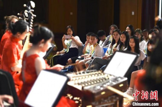 8月7日,华裔青少年在中国国家大剧院上了一堂民乐体验课。 中新社记者 李太源 摄