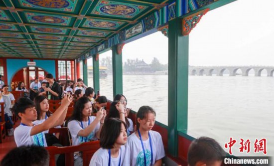 8月9日,海外华裔青少年们在颐和园游览。中新社记者 贾天勇 摄