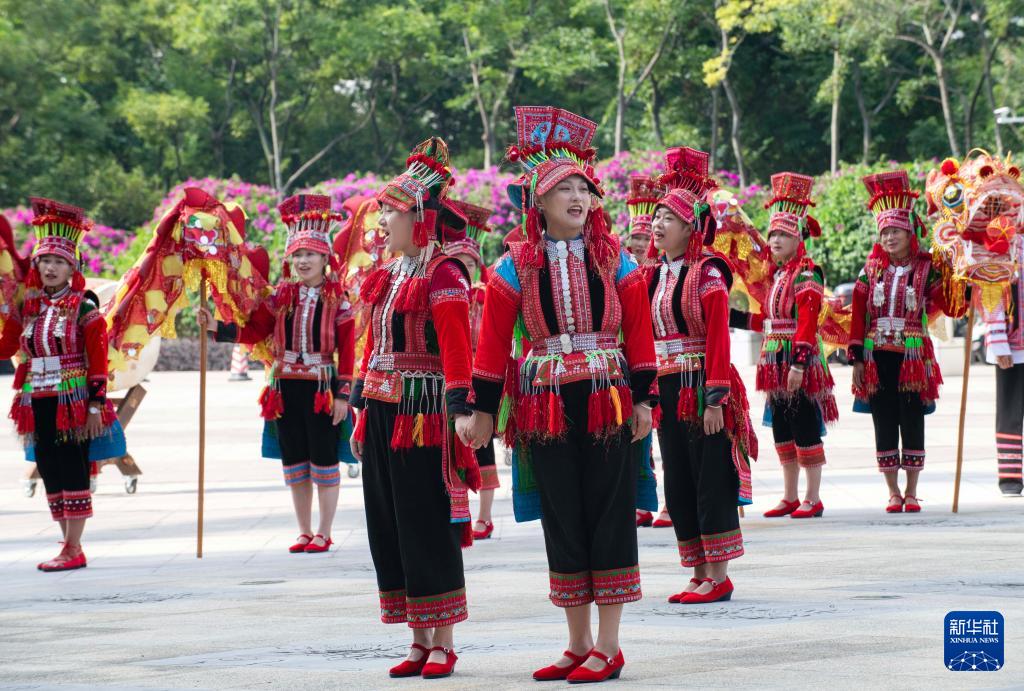 8月15日,参加第11届中国·南亚东南亚艺术周开幕式的演员在开幕式结束后合影留念。