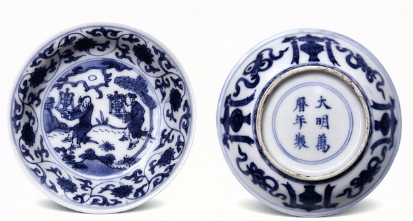 青花“五穀豊穣”人物図碟 明万歴