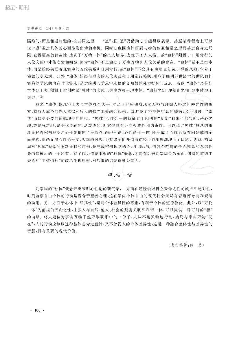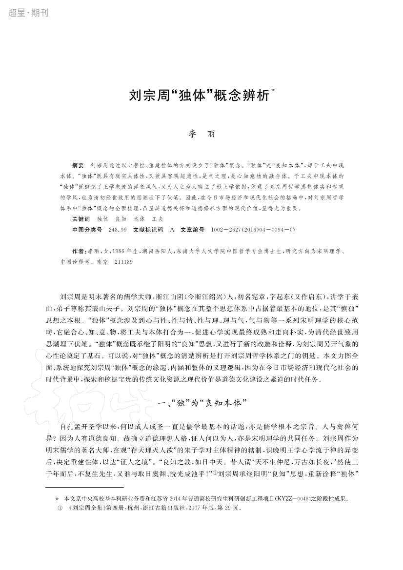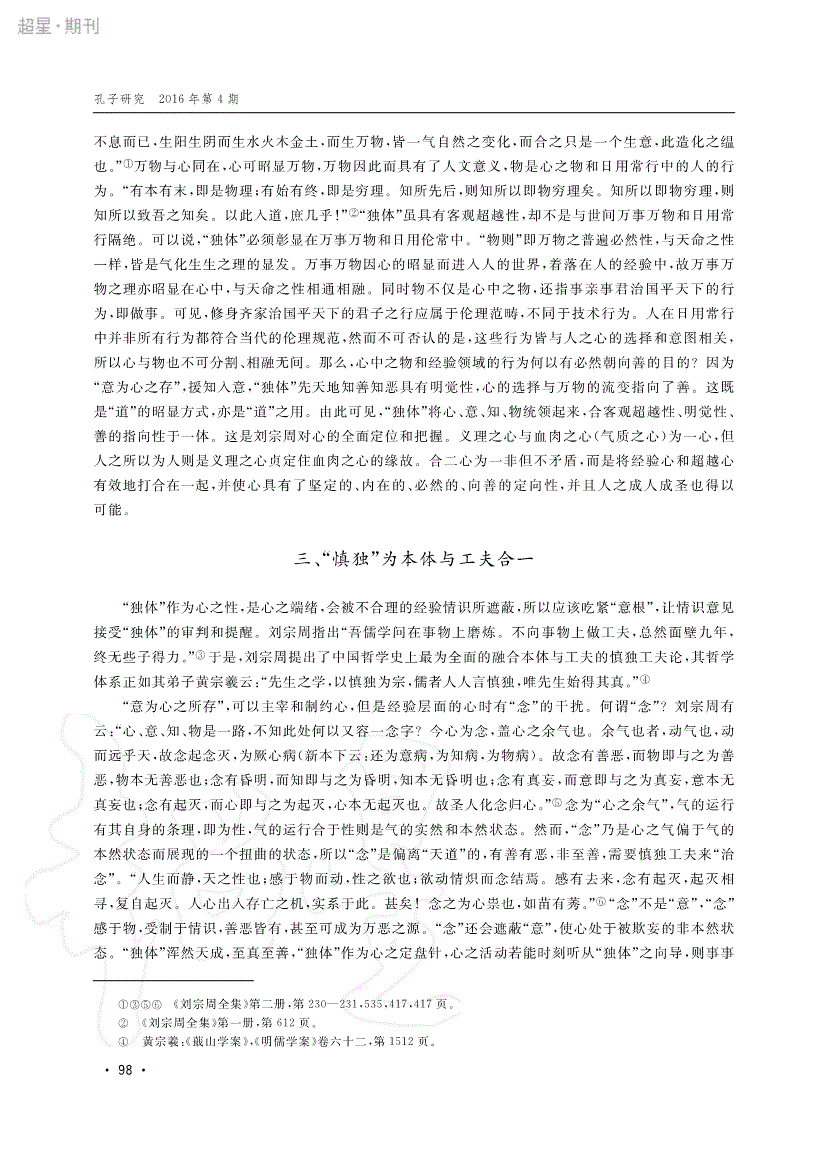 刘宗周“独体”概念辨析
