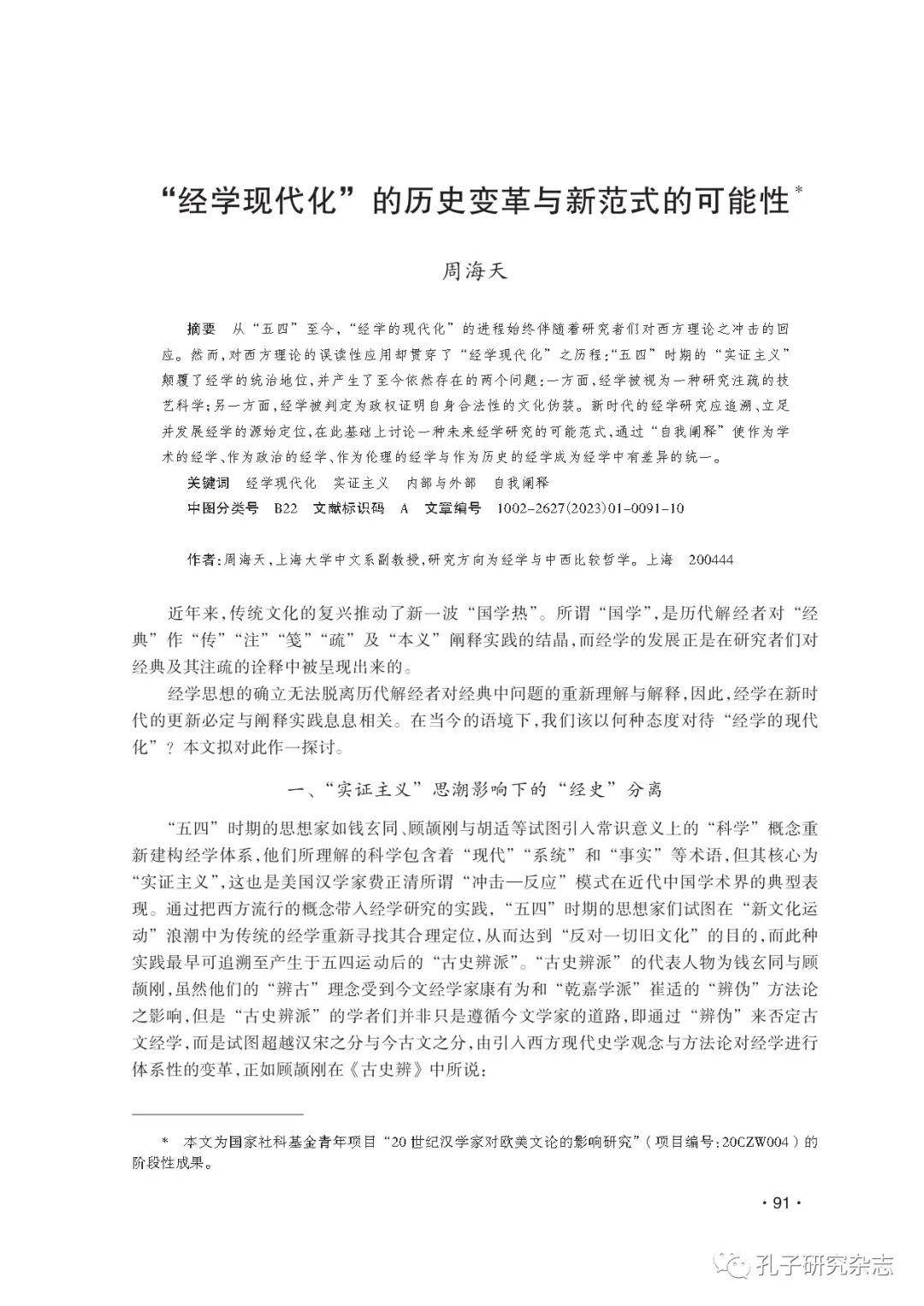 周海天:“经学现代化”的历史变革与新范式的可能性