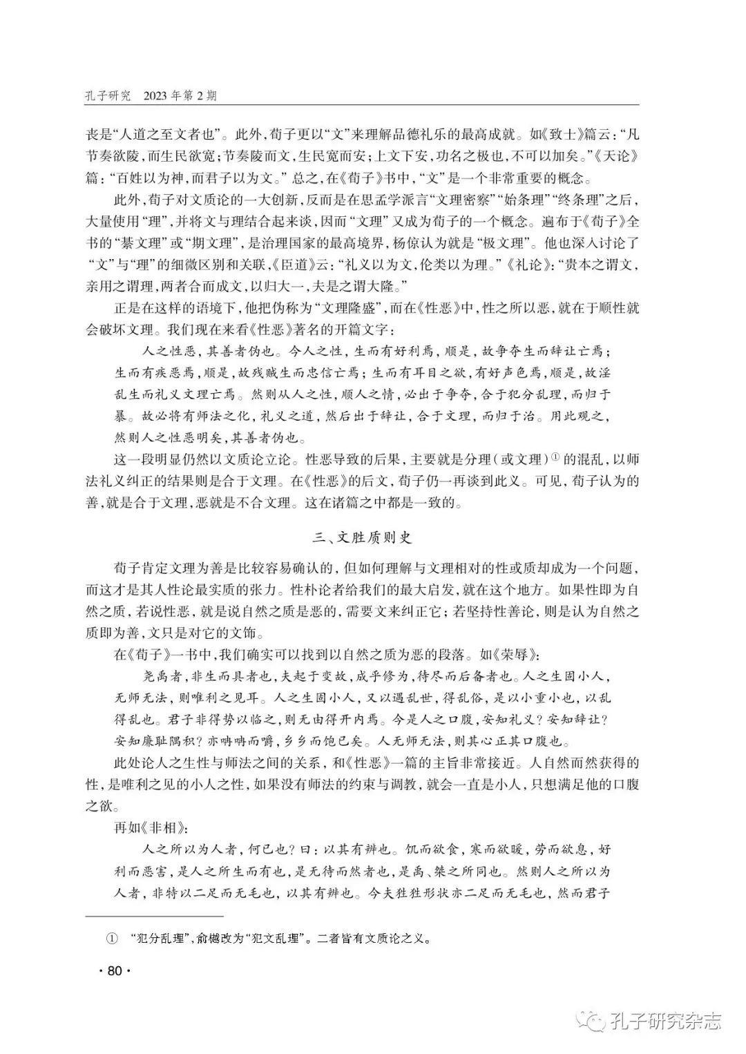 吴飞:文质论视野下的荀子人性论——兼评性朴论之争