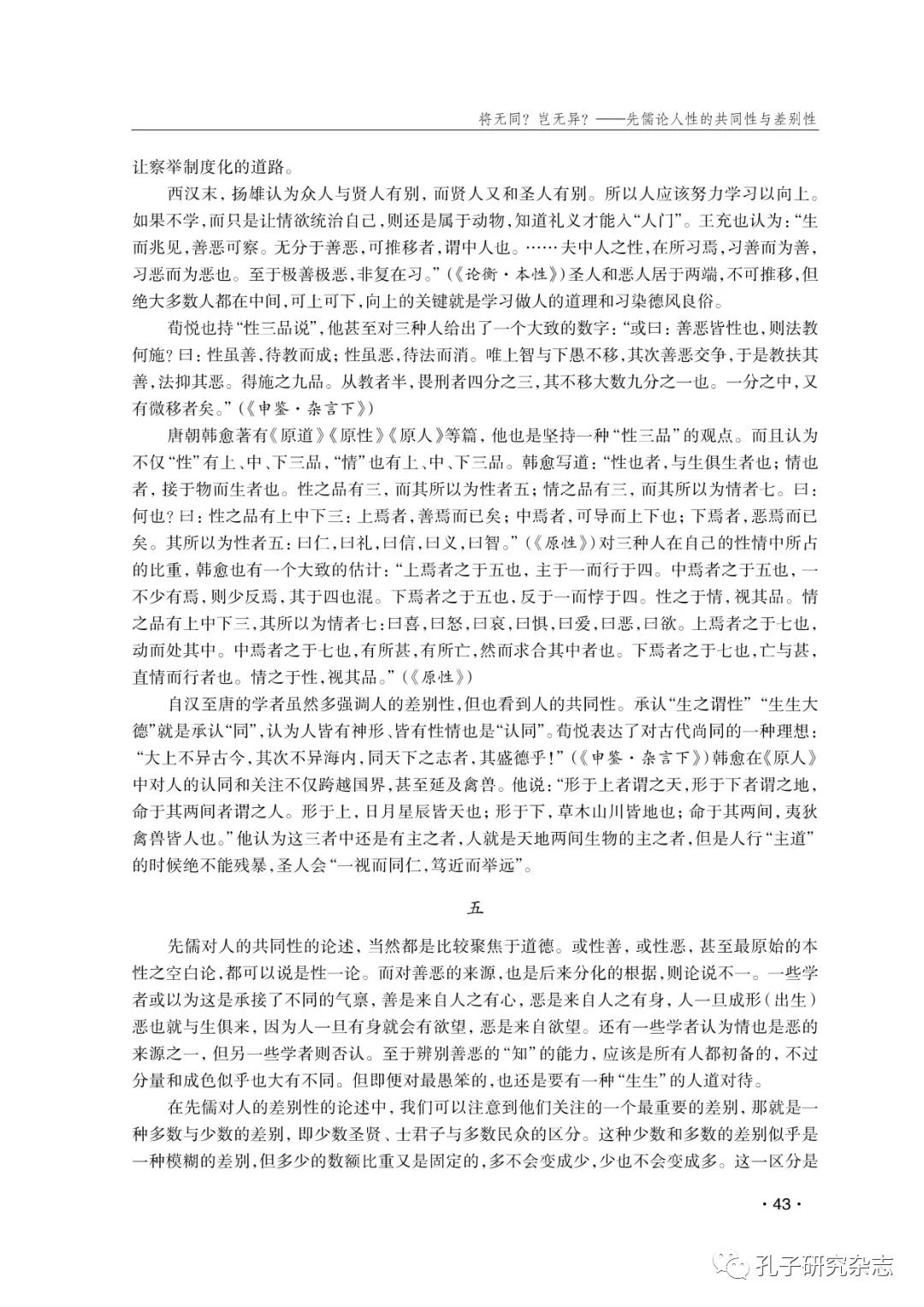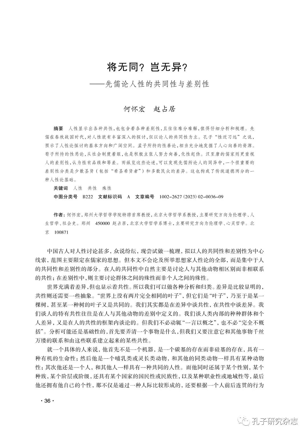 何怀宏 赵占居:先儒论人性的共同性与差别性