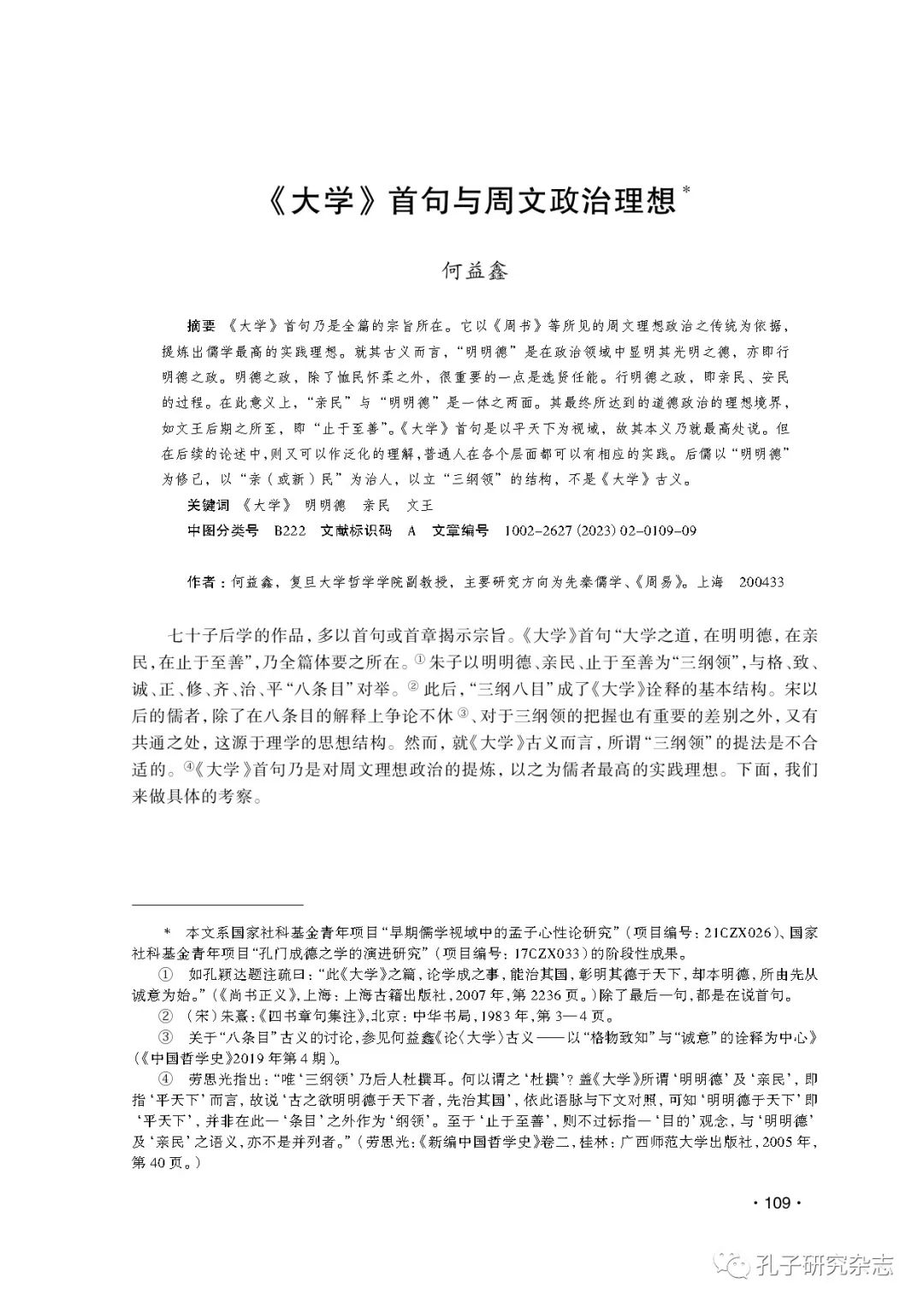 何益鑫:《大学》首句与周文政治理想