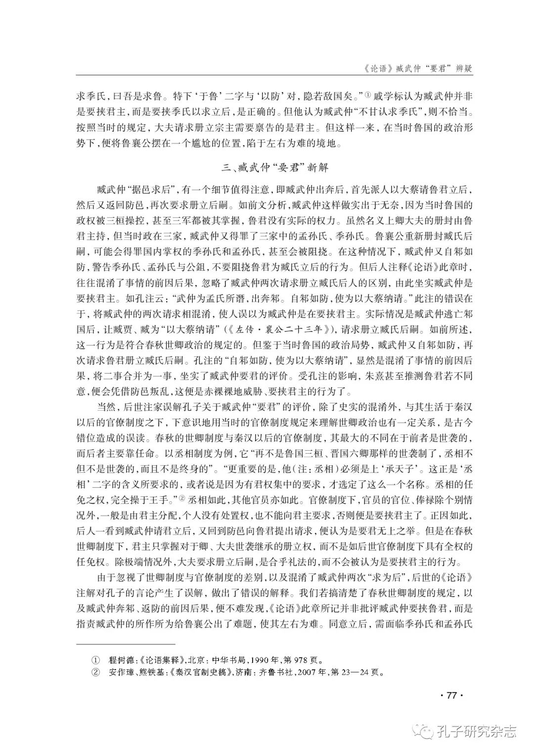 梁涛 韩述:《论语》臧武仲“要君”辨疑
