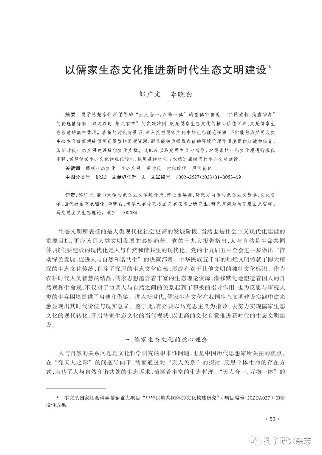 邹广文 李晓白:以儒家生态文化推进新时代生态文明建设