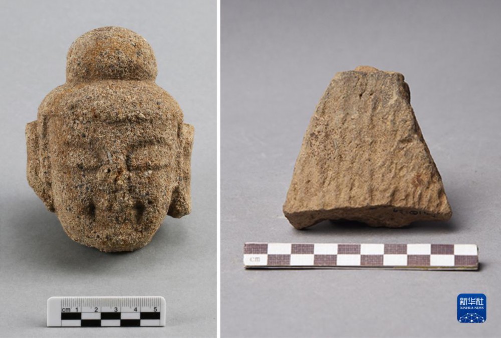 吉林珲春古城村1号寺庙址出土的佛像残片(拼版资料照片)。新华社发(国家文物局供图)