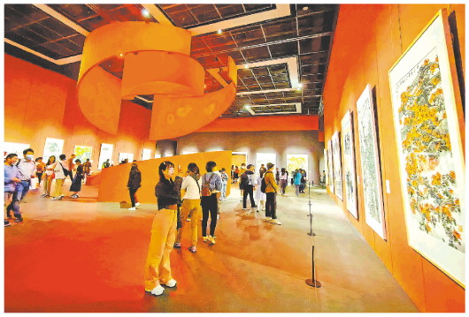 5月1日,游客在山东美术馆参观艺术展。(□记者 王臻儒 通讯员 姚允东 报道)