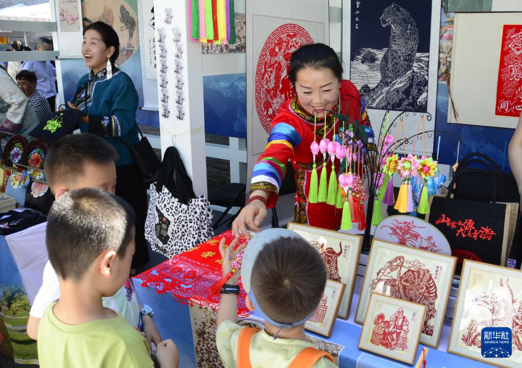 7月18日,来自青海的民间艺术家在活动上展示手工艺品。新华社记者 李欣 摄
