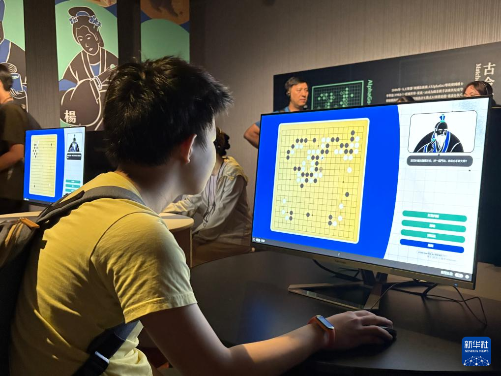 7月12日,观众在“棋人弈事:古代围棋文化”特展中体验互动式AI围棋游戏。新华社记者 李悦 摄