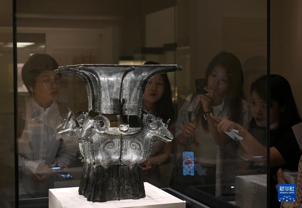 7月21日,人们在国博参观仰韶文化鹰形陶鼎。新华社记者 金良快 摄