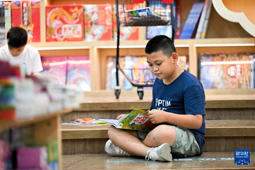 7月27日,小朋友在呼和浩特市青城阅立方书店阅读。新华社记者 李志鹏 摄