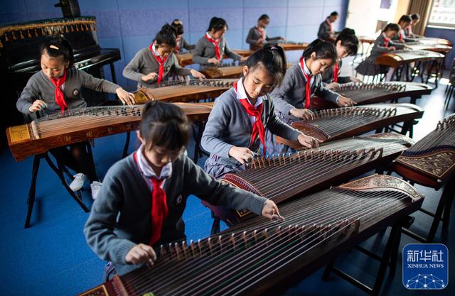 5月16日,湖北省荆州市沙市大赛巷小学学生在课后练习古筝。新华社记者 肖艺九 摄