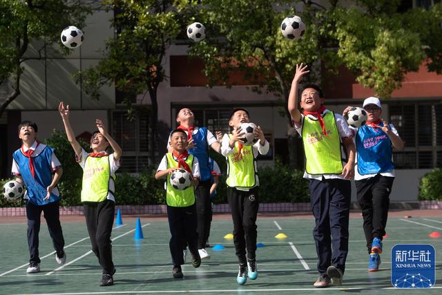 5月16日,湖北省荆州市沙市大赛巷小学学生在课后准备踢足球。新华社记者 肖艺九 摄
