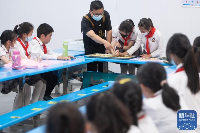 5月16日,湖北省荆州市沙市大赛巷小学学生在课后练习烘焙。新华社记者 肖艺九 摄