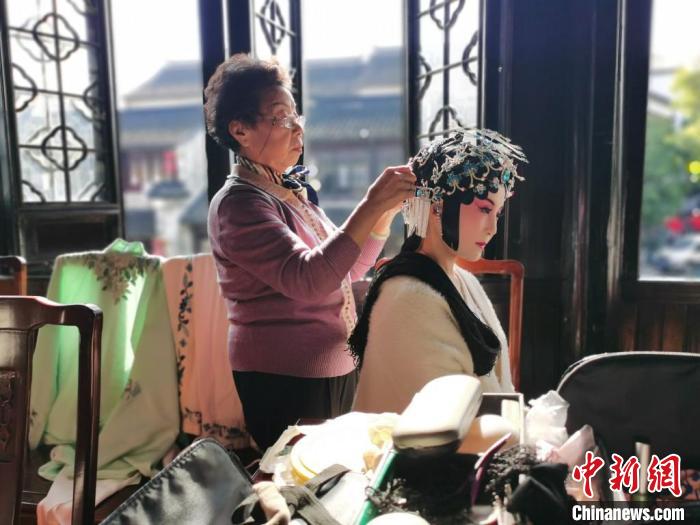 昆曲演员正精心装扮等待登台。(资料图) 钟升 摄