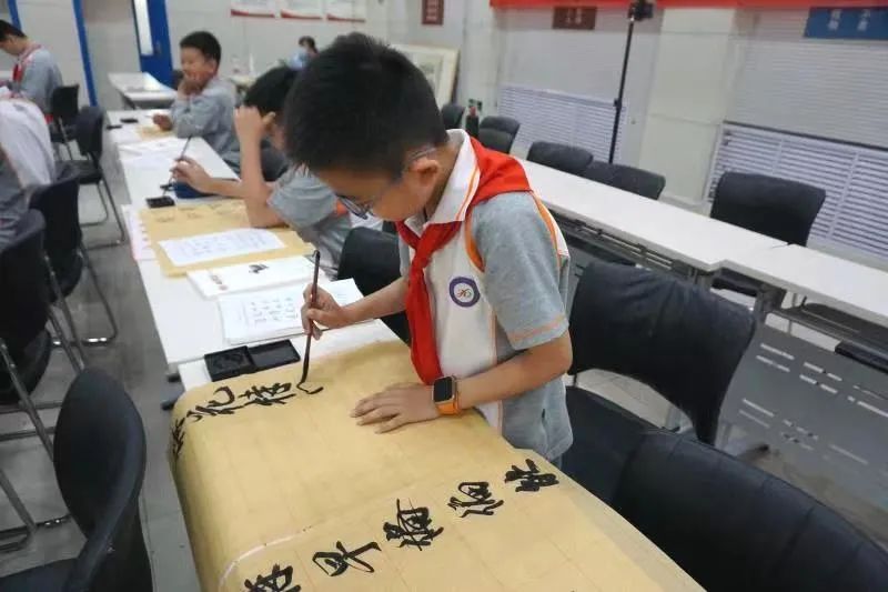 学习书法,到底要在纸笔上见真章。听完书法专家的精彩讲解,营市东街小学和锦绣城小学的学生早已跃跃欲试,想要在宣纸上大显身手。专家亲自示范执笔方法,教导学生握笔、运笔、落笔皆应端正姿势,鼓励学生端正态度,夯实基础,踏实练好基本功。学生有感于书法之美和老师的亲切指导,鼓起勇气提笔大胆练习,亲身感受笔墨间流淌的生命活力。“我觉得停不下来,越写越想写。”在两所学校的临摹现场,练习纸铺满教室,学生的书写热情只增不减,分外浓烈。