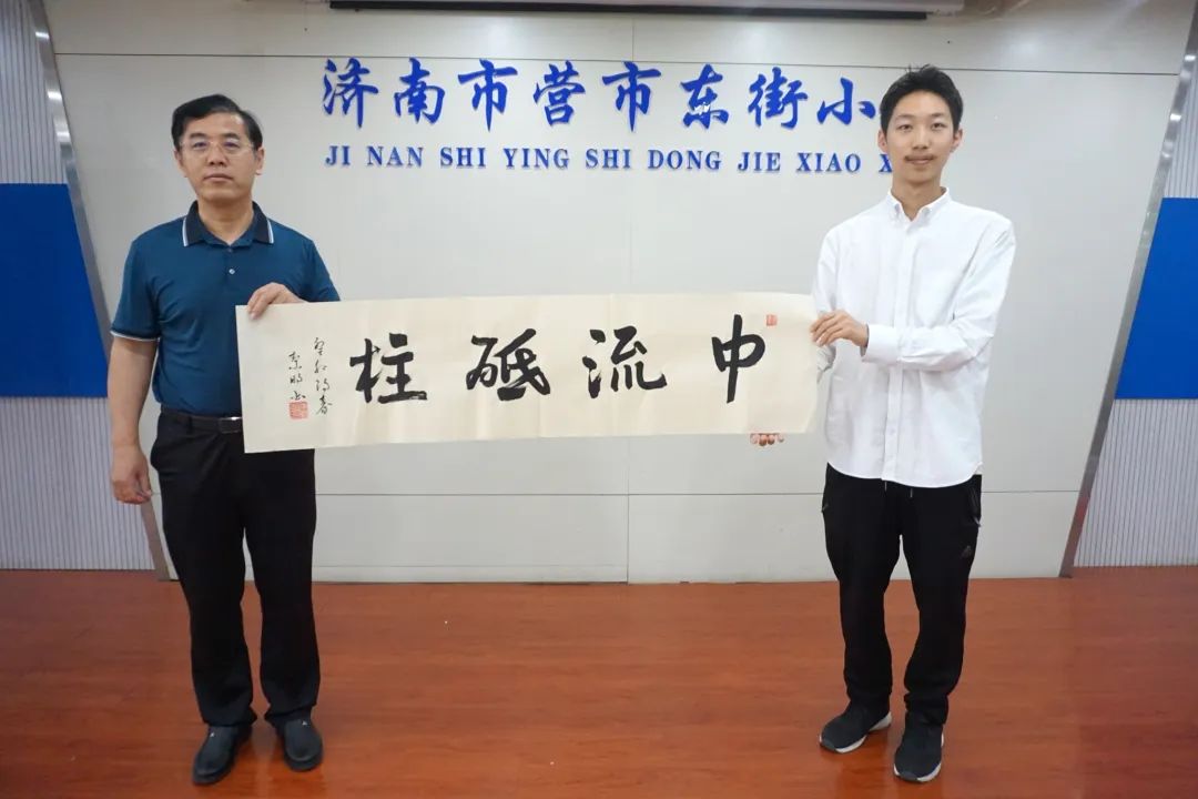 为鼓舞学生的“士气”,活动的承办单位文化大观杂志为学生赠送了书法用具,并为两所学校赠送了写有“中流砥柱”的书法作品。激励学生坚定书写恒心,成长为传承优秀传统文化的中流砥柱。