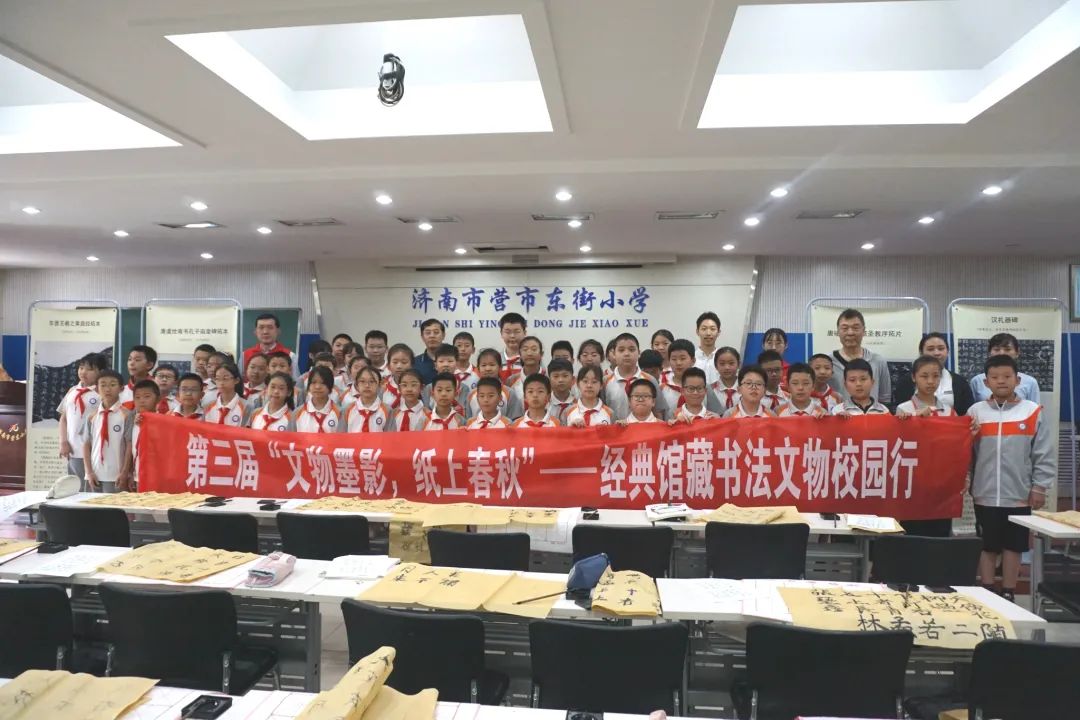 6月7日,第三届“文物墨影,纸上春秋”行走的思政课山东博物馆经典馆藏书法文物志愿服务校园行活动首站走进济南市营市东街小学和济南市槐荫区锦绣城小学。本次活动包括书法文物喷绘作品展示、书法文物等传统文化知识普及讲座、现场书法临摹和财商教育普及讲座等环节。活动由山东省文化和旅游厅、山东省社会科学界联合会、济南市教育局主办,山东博物馆、山东省博物馆学会、山东省博物馆联盟、山东省新时代文明实践社科普及志愿服务总队、莱商银行、《文化大观》杂志承办。