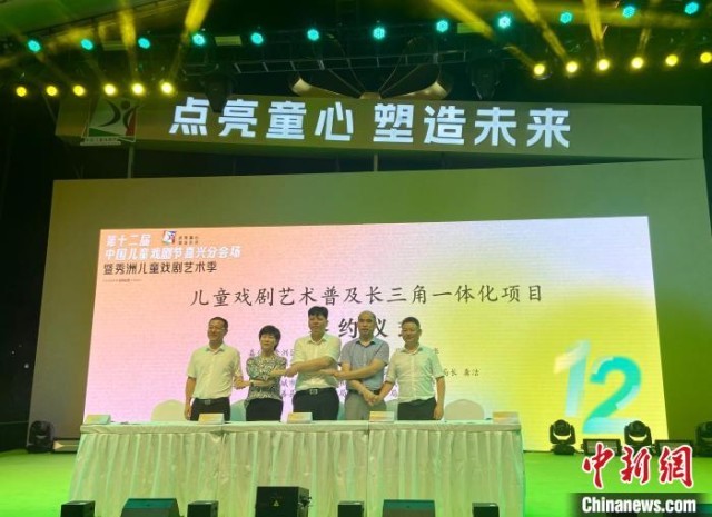 在20日晚浙江省嘉兴市秀洲区举行的第十二届中国儿童戏剧节嘉兴分会场暨秀洲儿童戏剧艺术季开幕式上,嘉兴市秀洲区、嘉善县与上海市青浦区、江苏省苏州市吴江区、安徽省宣城市宣州区共同签署“儿童戏剧艺术普及长三角一体化战略合作框架协议”。未来三年里,上述五地将发挥各自优势、增加优质公共服务供给,携手开展戏剧共享计划、戏剧展演计划、文化联姻计划。