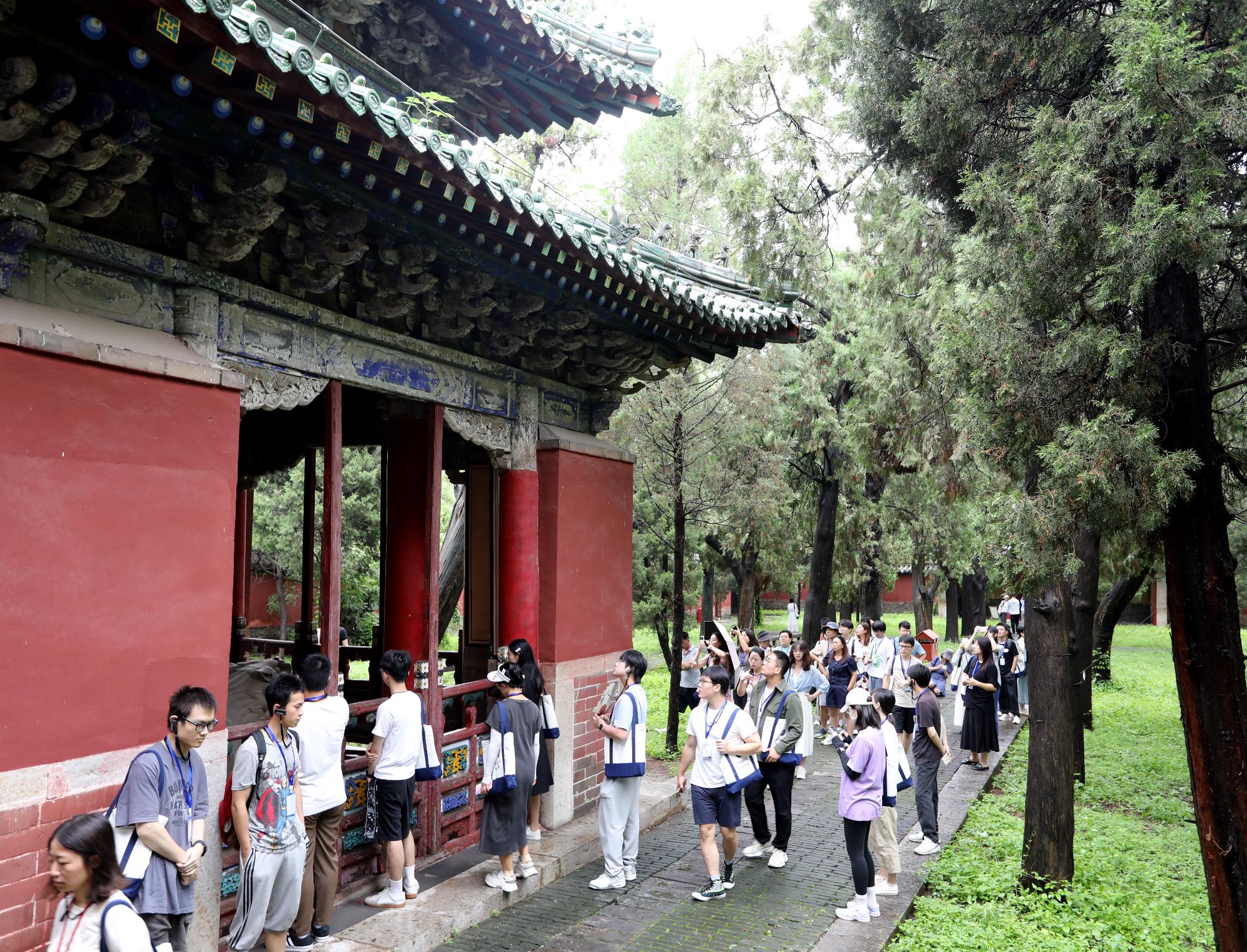 博士研究生们踏入九进院落、三路布局的孔庙,徜徉在参天古木、巍峨庙堂之间,驻足于俯拾皆是的楹联家训前,身临其境感受圣迹遗风,深入探究中华礼乐文明的历史发展脉络,重新认识周公“制礼作乐”的历史贡献和现代意义,汲取儒家文化智慧。