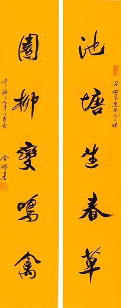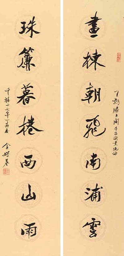 金耀基书七言字对(王勃滕王阁千古写景绝诵)