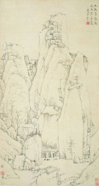 弘仁曾至庐山凭吊宗炳,感怀竺道生之精微佛理,效仿慧远大师,修行净土宗。其画空阔古秀,冰清玉洁,不染尘鞅,每生空谷禅境,与髡残苍茫圆浑迥异。以近代印人喻之,弘仁如黄牧甫,髡残如吴缶翁。今读弘仁诗“茅屋禁寒昼不开,梅花消息早先回。幽人记得溪桥路,双屐还能踏雪来”,可为其画境注脚也。