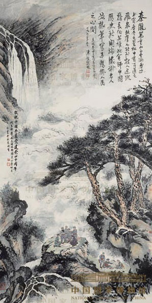 何香凝、廖承志等合绘陈毅题跋的“长征会师图”,作者: 何香凝、廖承志、胡佩衡、陈半丁、秦仲文、陈毅(中国国家博物馆收藏)