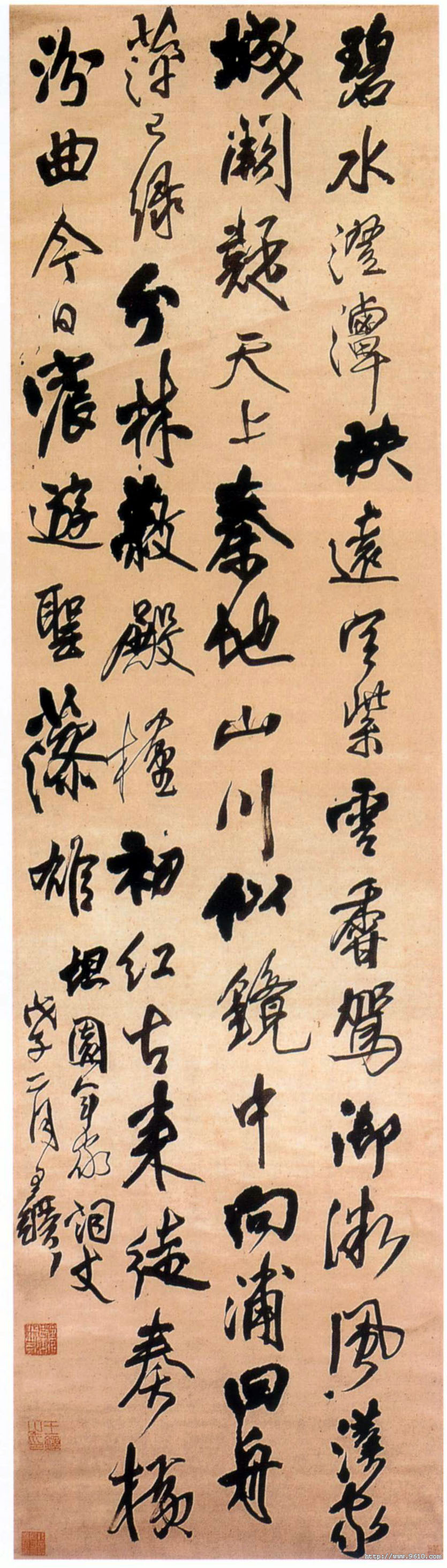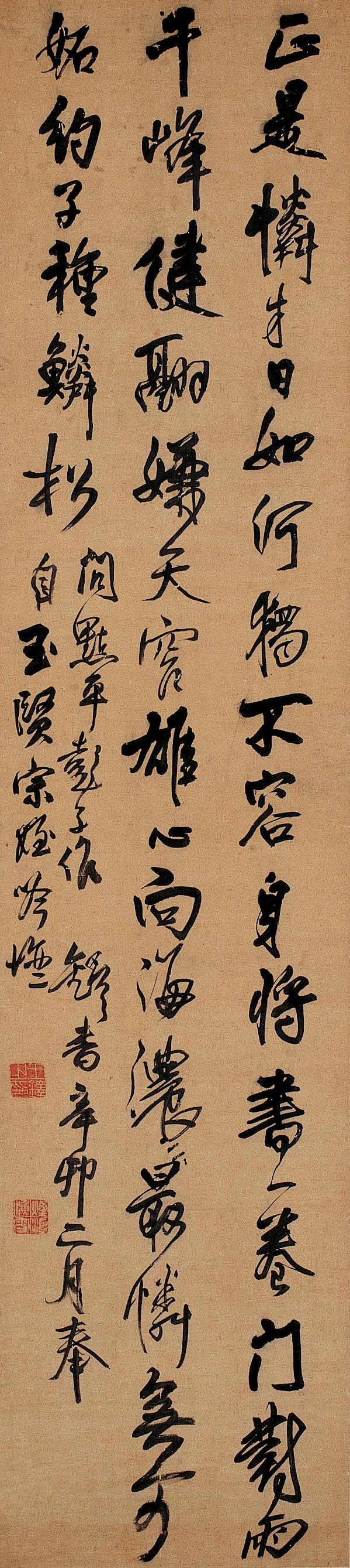 王铎 行书忏诗之三轴 绫本 行书纵240厘米横49厘米