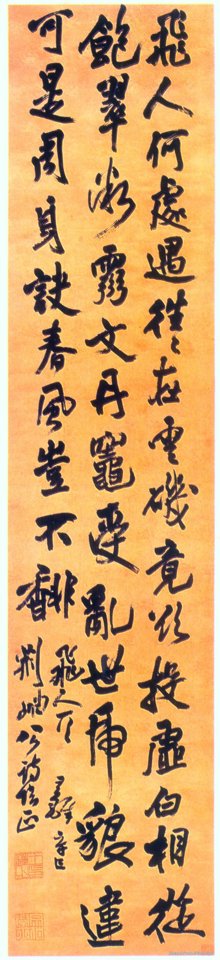 王铎《杜子美赠陈补阀诗》,凡三行,共58字。纵203cm,横5lcm 。