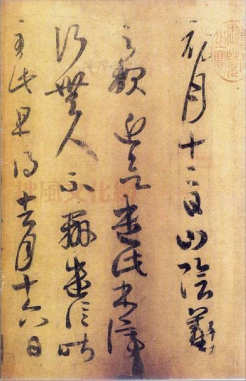 《快雪时晴帖》,行书四行。 现藏于台北博物馆。