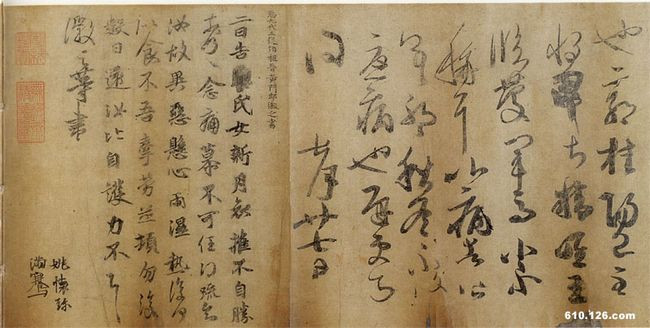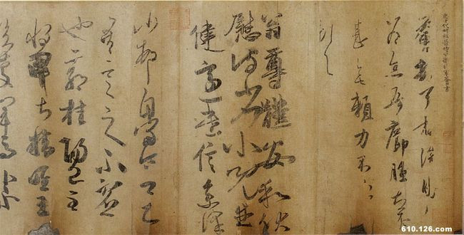 王荟《疖踵帖》、《翁尊体》 见于辽宁省博物院藏的《唐摹万岁通天帖》,唐摹本。