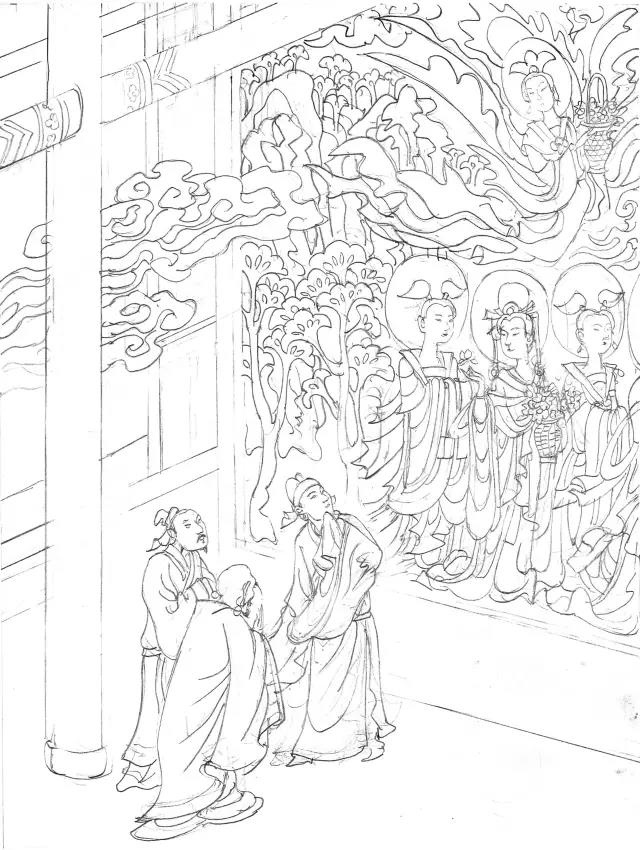 他在绘画创作过程中也饱尝清苦,创作《聊斋志异》邮票时,为了激发创作灵感,捕捉画面气息,他踏遍破壁残垣、古代村落、荒芜蛮地,时常独居山林之中,以庙观为邻,道士为友。正是这一超然物外、痴迷癫狂的创作状态才使得《聊斋志异》邮票画面中人物形象栩栩如生,布景静谧无比,从而达到了幻真幻假、神秘灵异、恍若隔世、虚无缥缈的高超境界。
