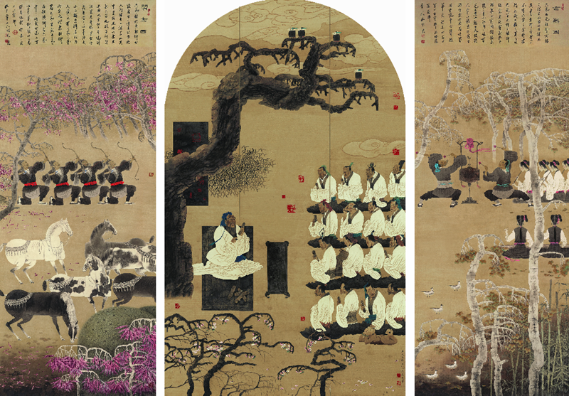 《杏坛讲学》三联画参加“山东十画家晋京展”(2003/全国政协)