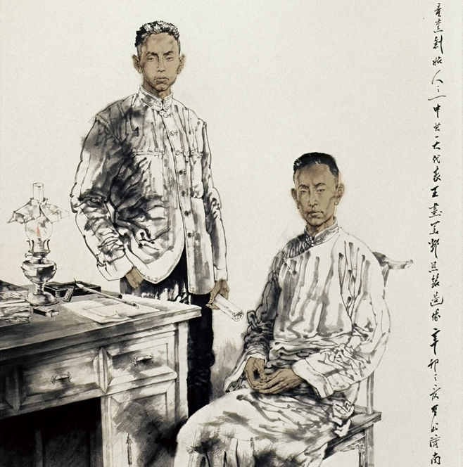 《齐鲁之光——为党的一大代表王尽美、邓恩铭造像》参加“纪念建党90周年全国美展”(2011/北京)