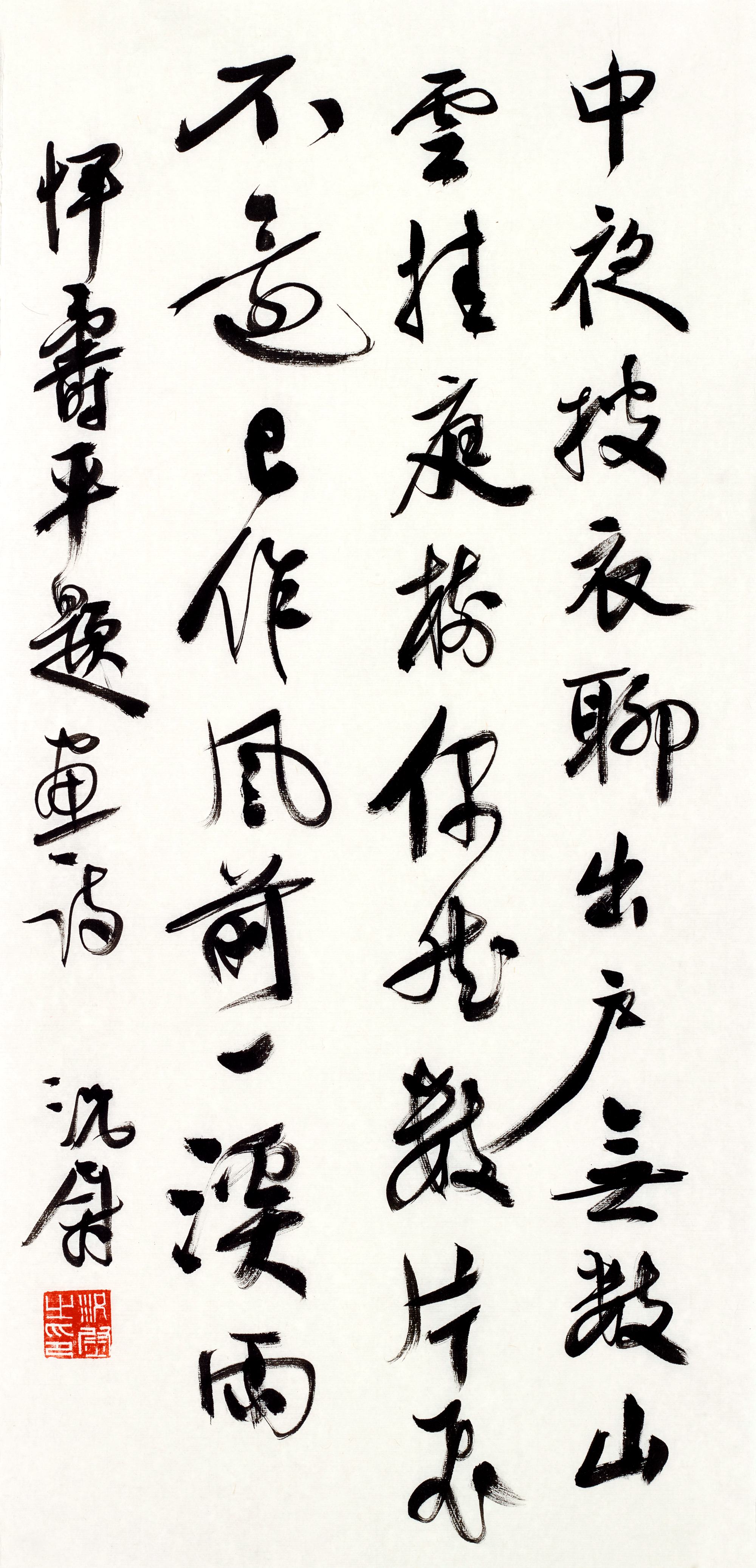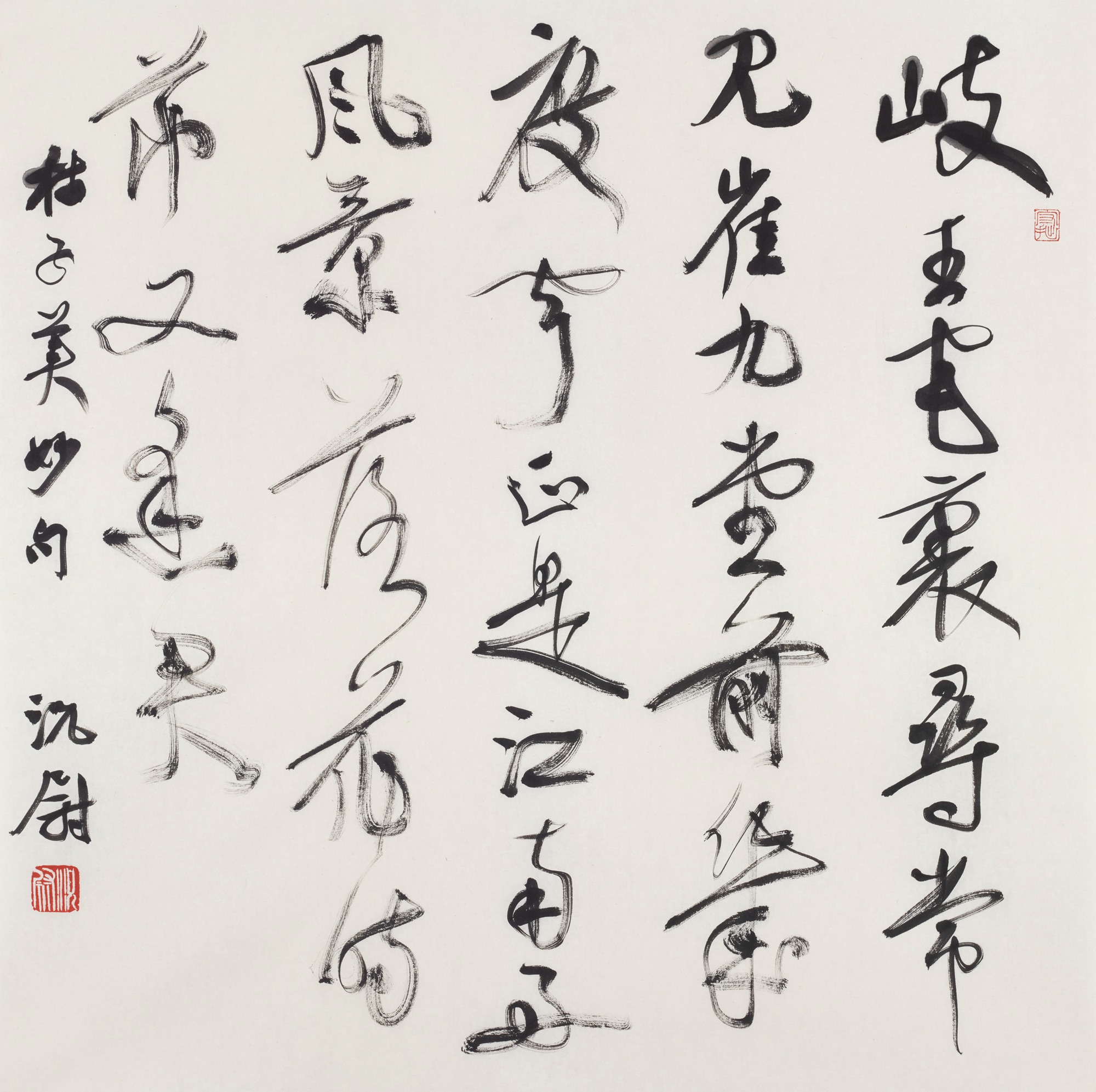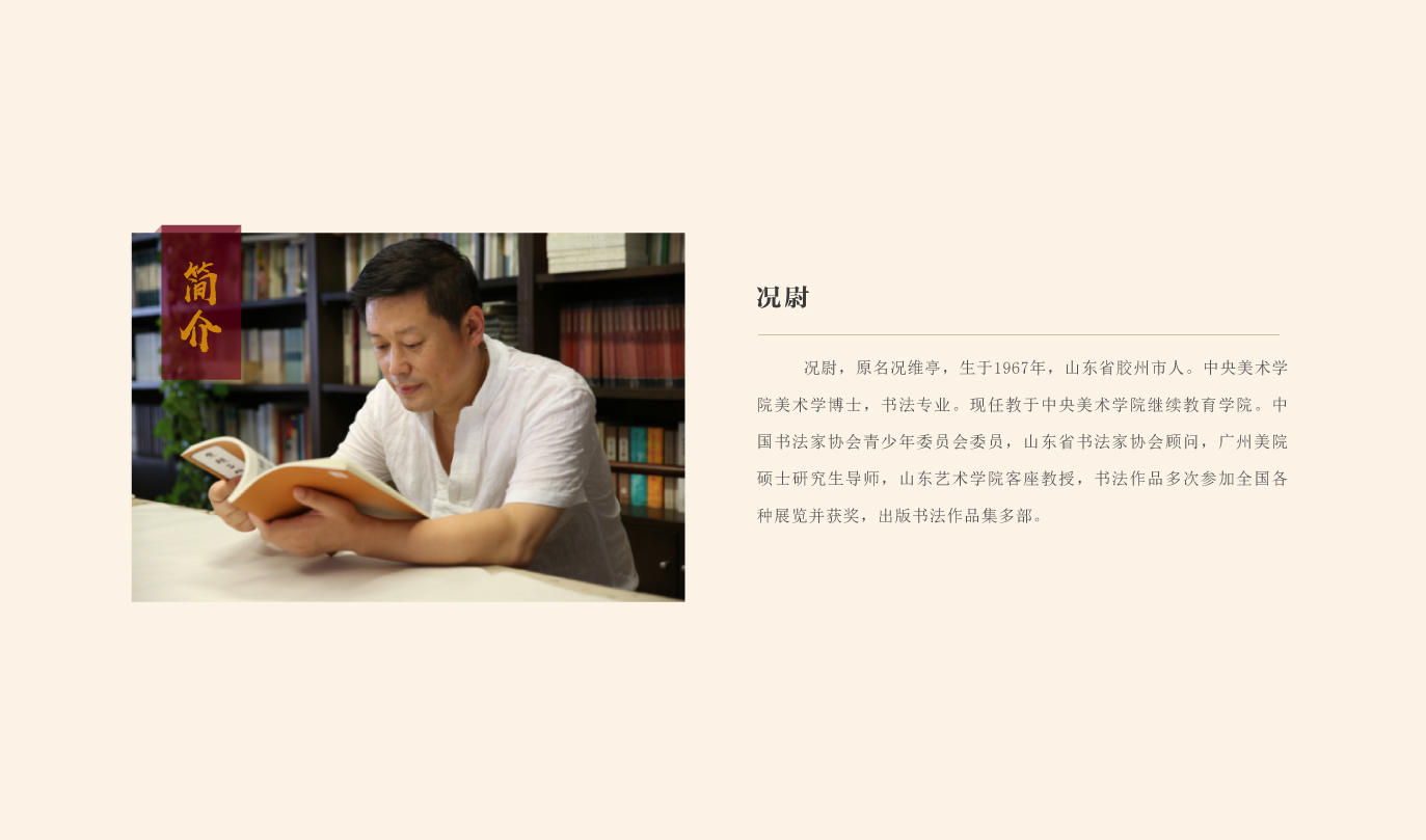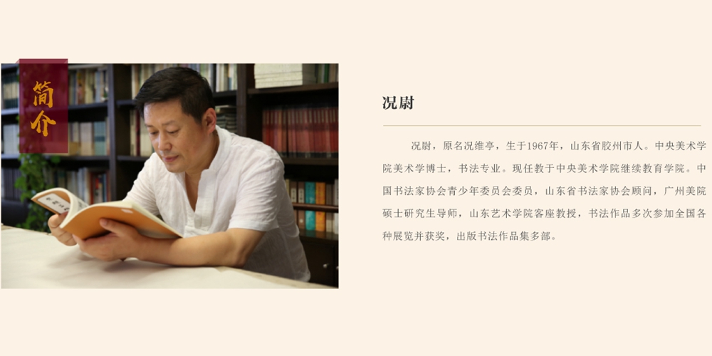 观况尉兄的书法,可见其参古法甚深,古法能遗貌取神,不执着于某家某帖,保持一种吸收的自由度,忠实自己的心源。况尉兄的书法重点画、重用笔,所以他能始终落实在写字这一起点上,不刻意追求变形,堂堂正正而活活泼泼。笔法干净利落,英气逼人而又能以文气压之,不至于轻佻流荡。结体巧中带拙,变化精微,气局宏阔。他的作品,结体以传统为根基,不做过分的表现,呈现出平和的雅气与儒雅的韵味,以点画润结体,以用笔成章法,将古人的典雅与自我的艺术体验融合一处,终将书法的正大气象表现出来,典雅有致,气韵自心。