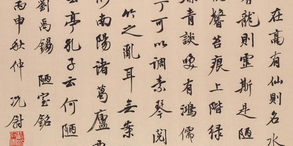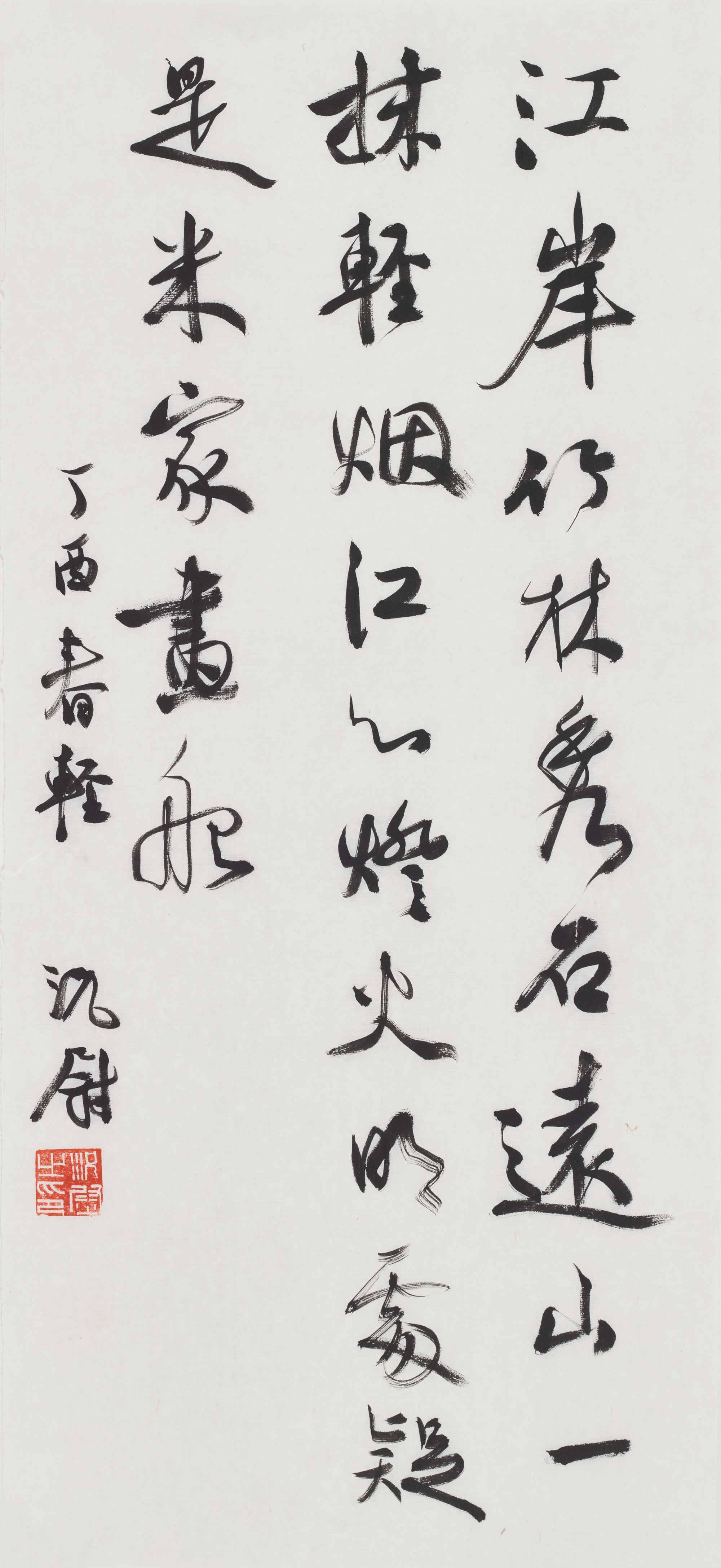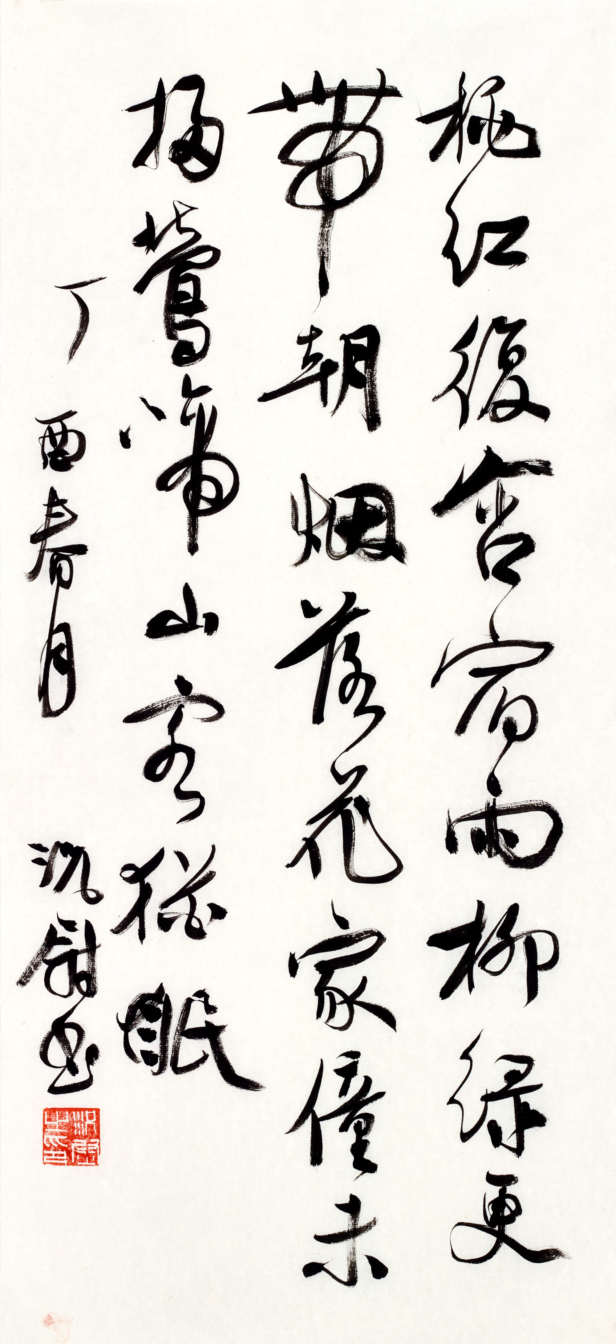 观况尉兄的书法,可见其参古法甚深,古法能遗貌取神,不执着于某家某帖,保持一种吸收的自由度,忠实自己的心源。况尉兄的书法重点画、重用笔,所以他能始终落实在写字这一起点上,不刻意追求变形,堂堂正正而活活泼泼。笔法干净利落,英气逼人而又能以文气压之,不至于轻佻流荡。结体巧中带拙,变化精微,气局宏阔。他的作品,结体以传统为根基,不做过分的表现,呈现出平和的雅气与儒雅的韵味,以点画润结体,以用笔成章法,将古人的典雅与自我的艺术体验融合一处,终将书法的正大气象表现出来,典雅有致,气韵自心。
