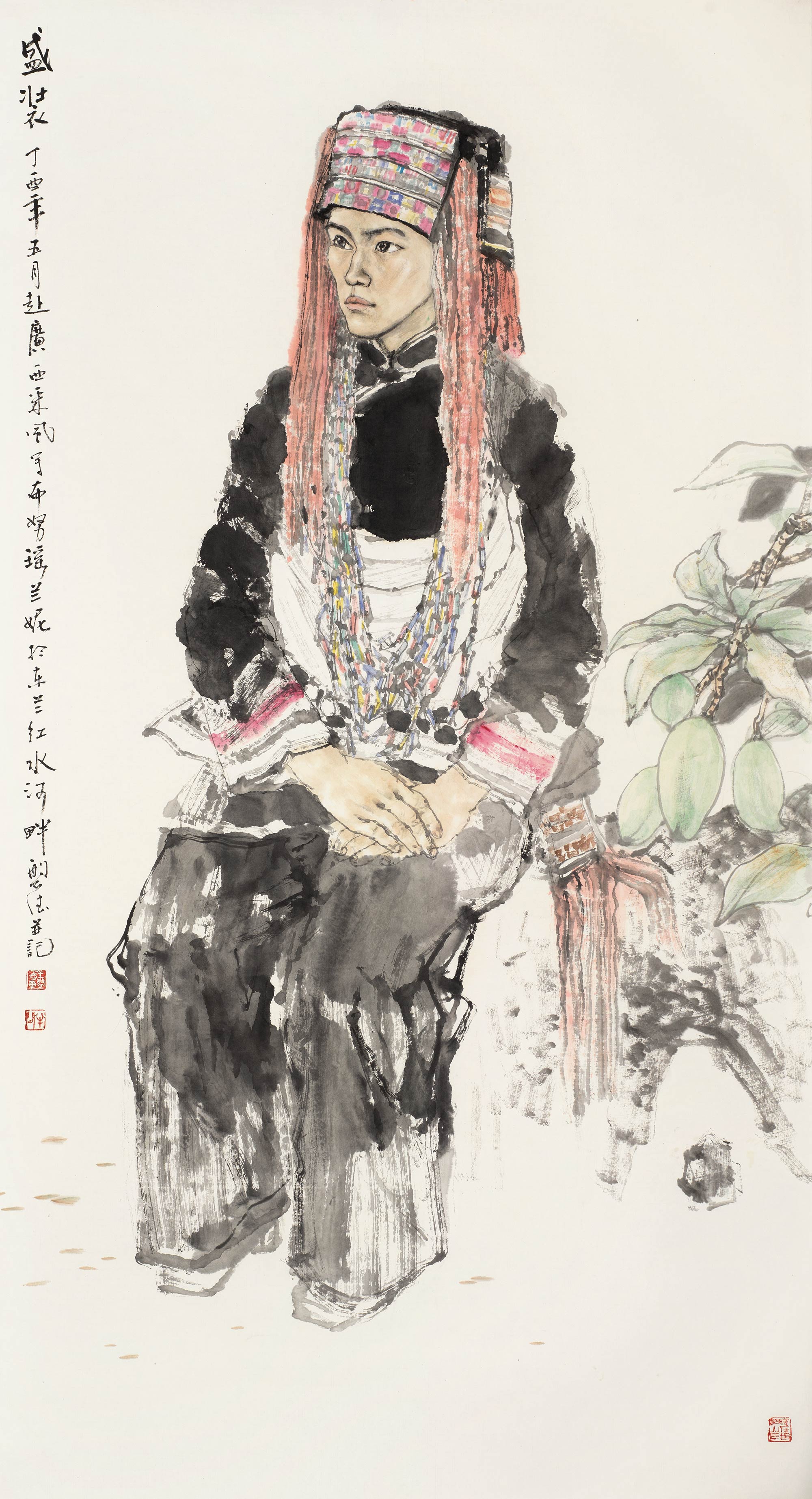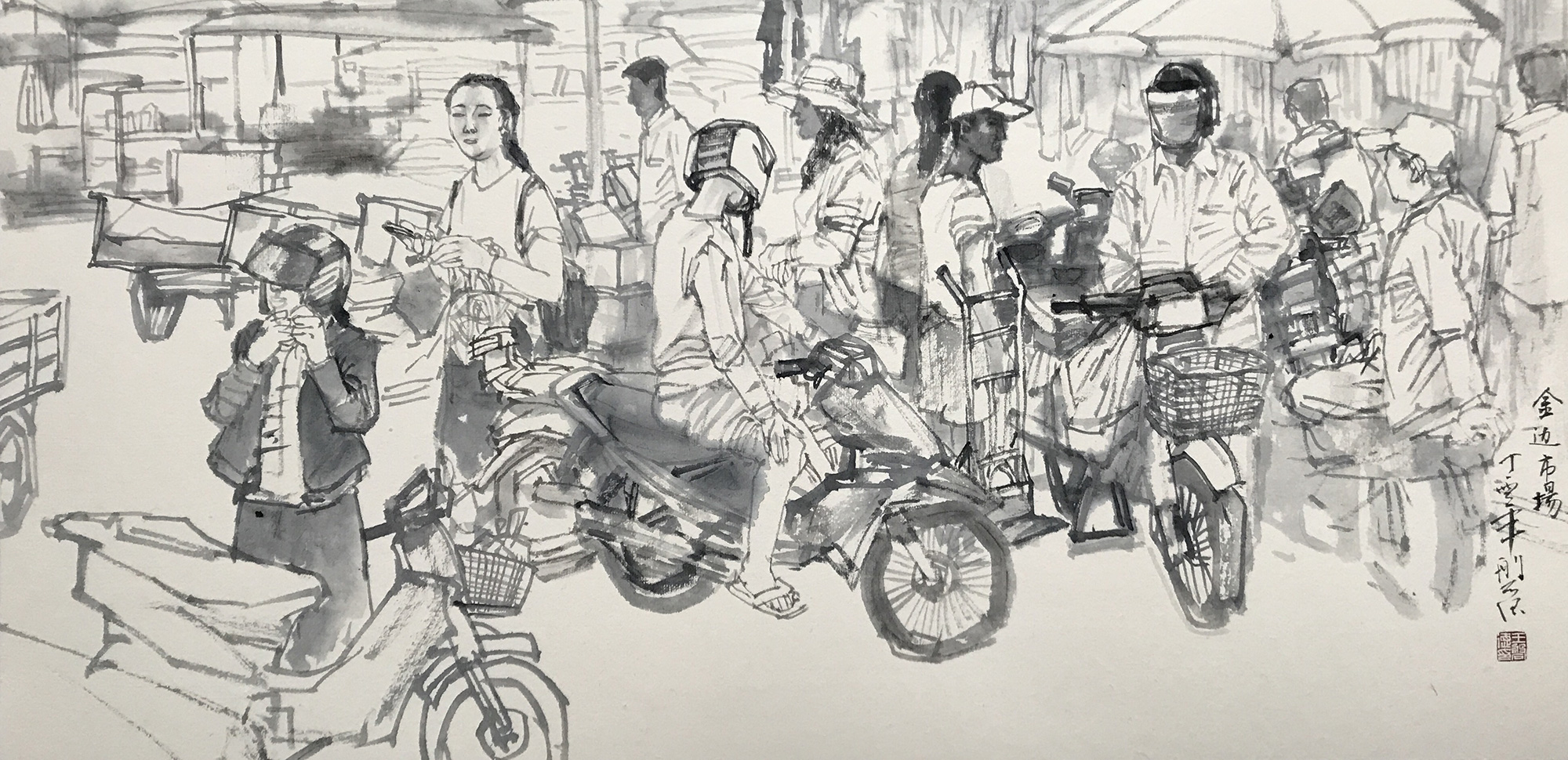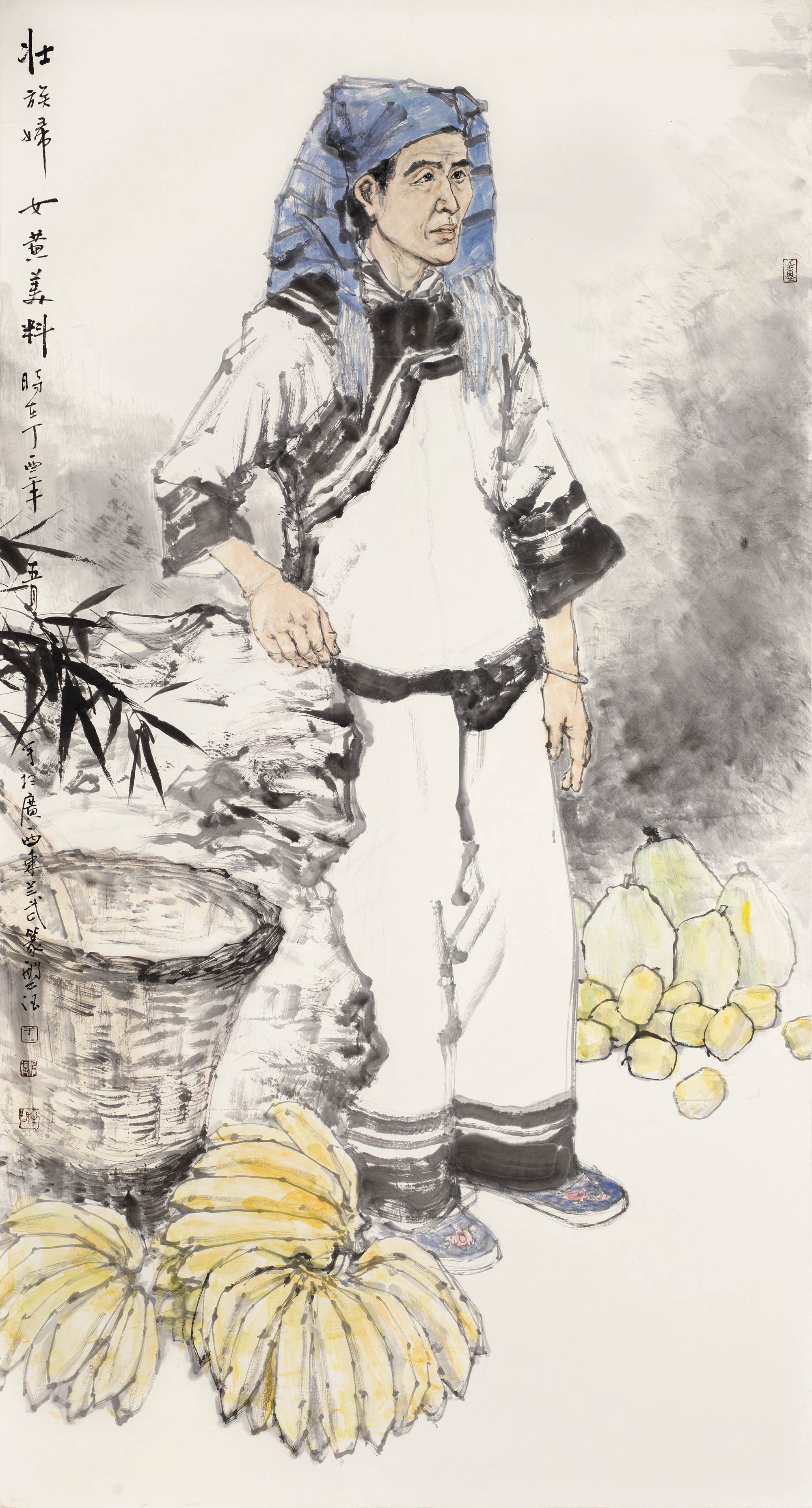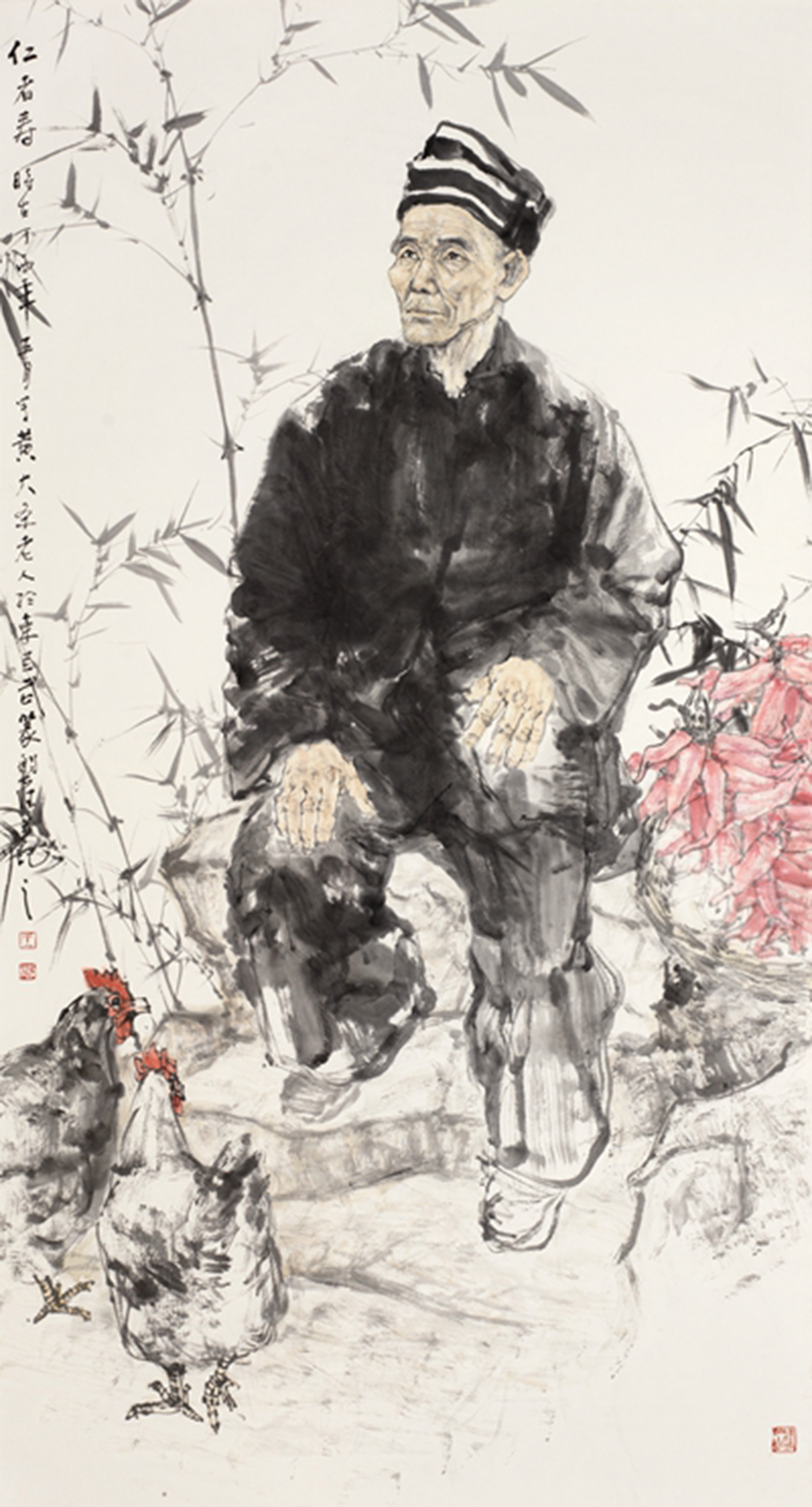 王磐德是美院出身的中国画家,他有两大特点,一是造型能力强,特别擅于写生,下笔轻重缓急,错落穿插,结构甚为紧密;二是生活气息浓,注意观察对象,善于捕捉人物转瞬即逝的表情,无论回眸一笑还是凝望注视或细细打量,总有一种意涵在内。在人物画领域,这也许是普遍的现象,但王磐德于此尤其突出,少有失误,其画之品格,与其人一样,朴实厚道,即古人曰厚德载物者是也。——郑工